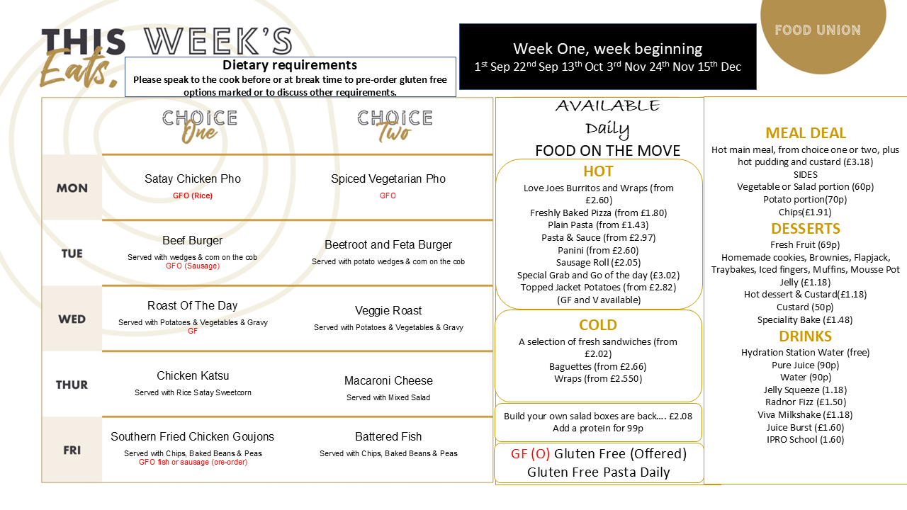 Refectory Menus for 2025/26