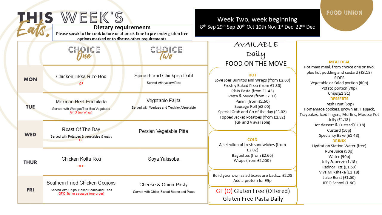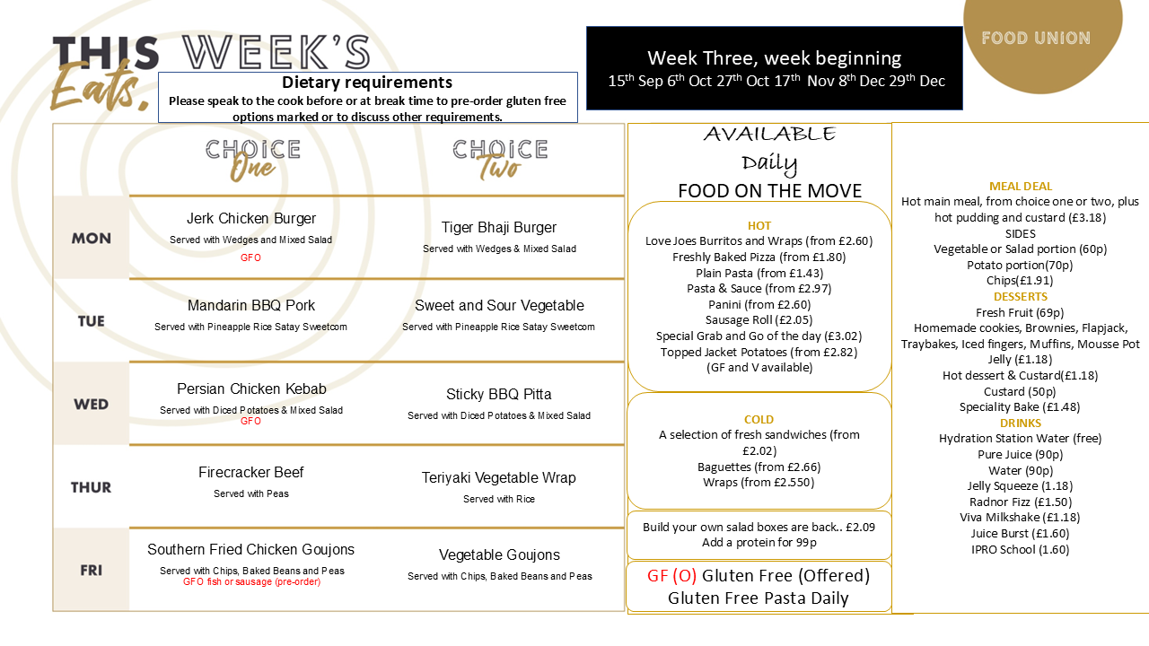 Sixth Form Menus for 2025/26